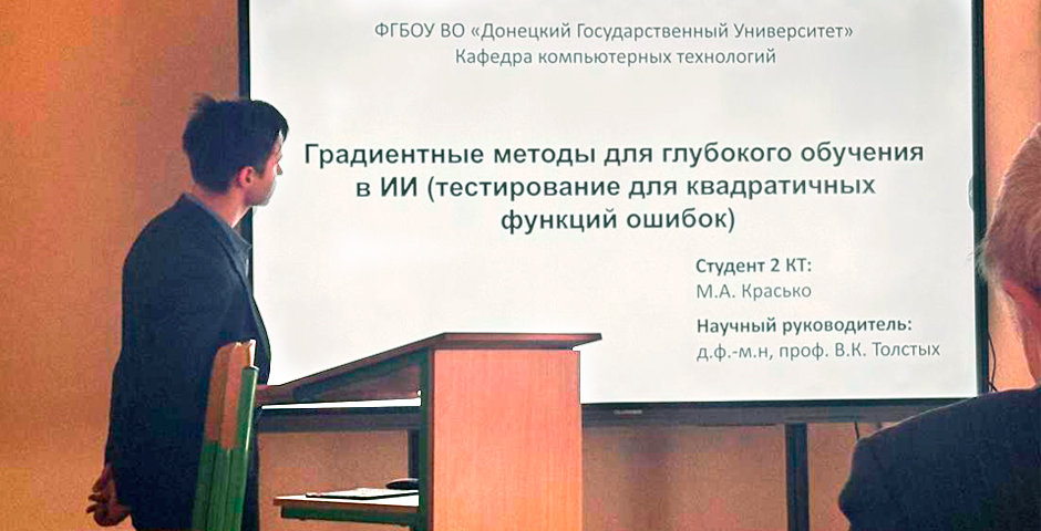 Был представлен доклад магистра второго курса кафедры компьютерных технологий ДонГУ М.А. Красько на тему «Градиентные методы для глубокого обучения в искусственном интеллекте».